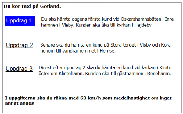 Efter uppdrag 3 ska du köra den kortaste vägsträckan tillbaka till Visby centrum. Vilka ort passerar du då?