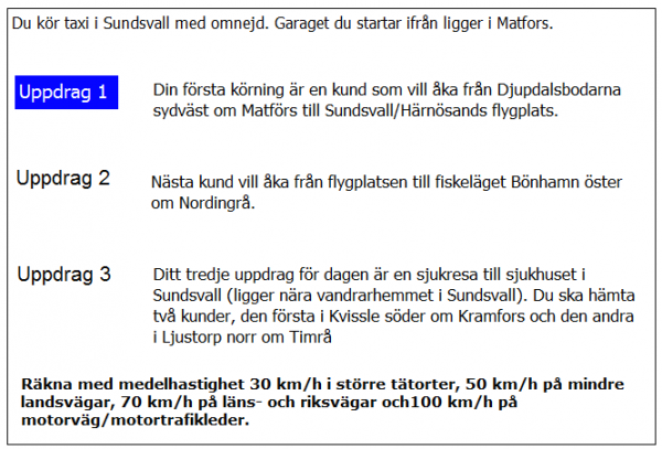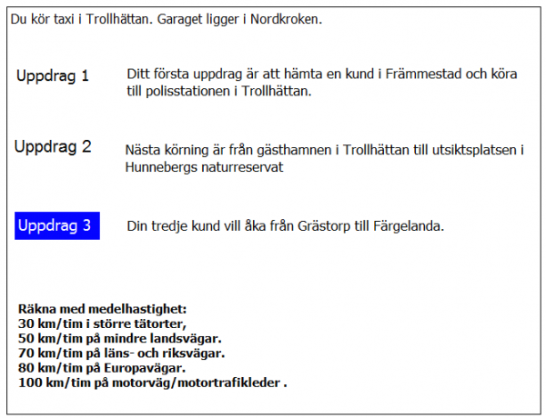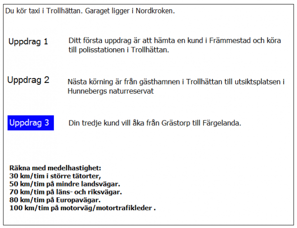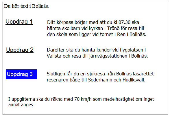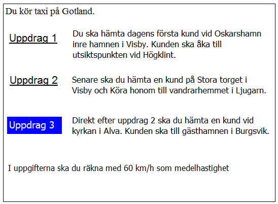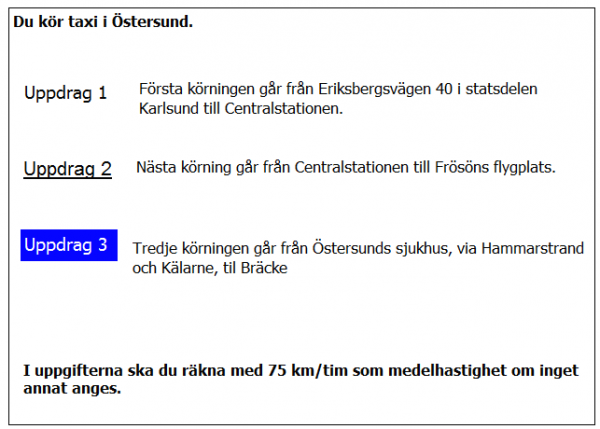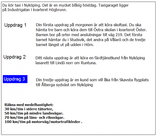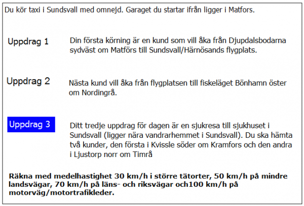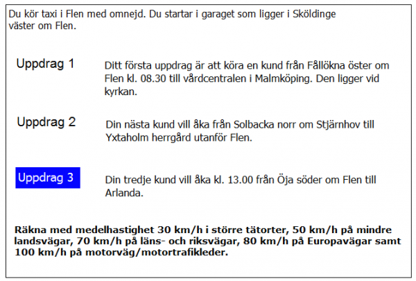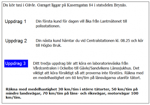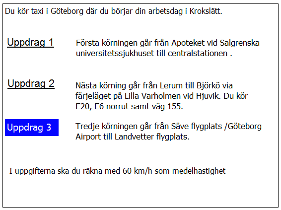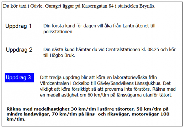 Vilken väg ska du ta för att få kortaste körtid i uppdrag 3?