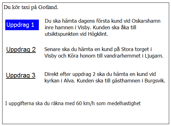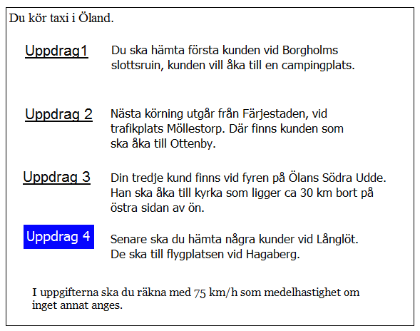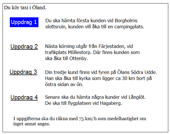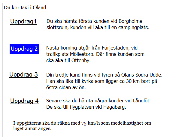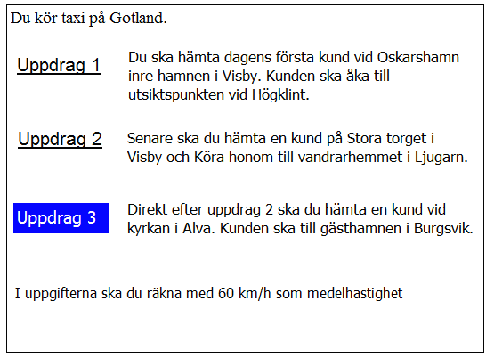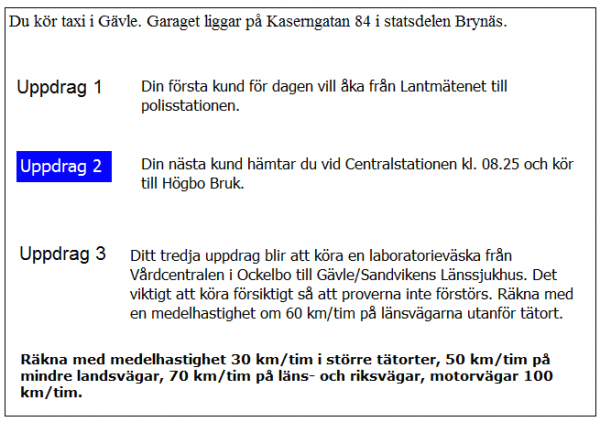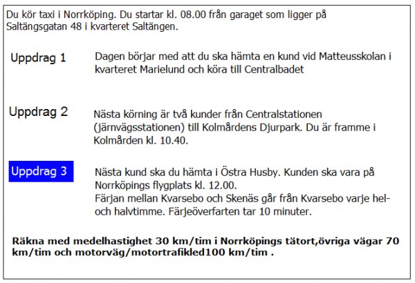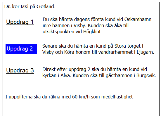 Du har kommit till Kastlösa. när kan du tidigast hämta kunden i uppdrag 2?