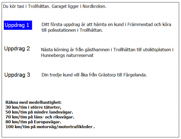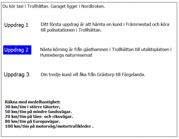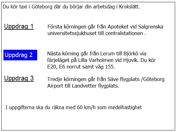 När ni passerat järnvägsstationen i Trollhättan undrar kunden hur lång tid det tar tills ni kommer fram i uppdrag 2. Vad svarar du?