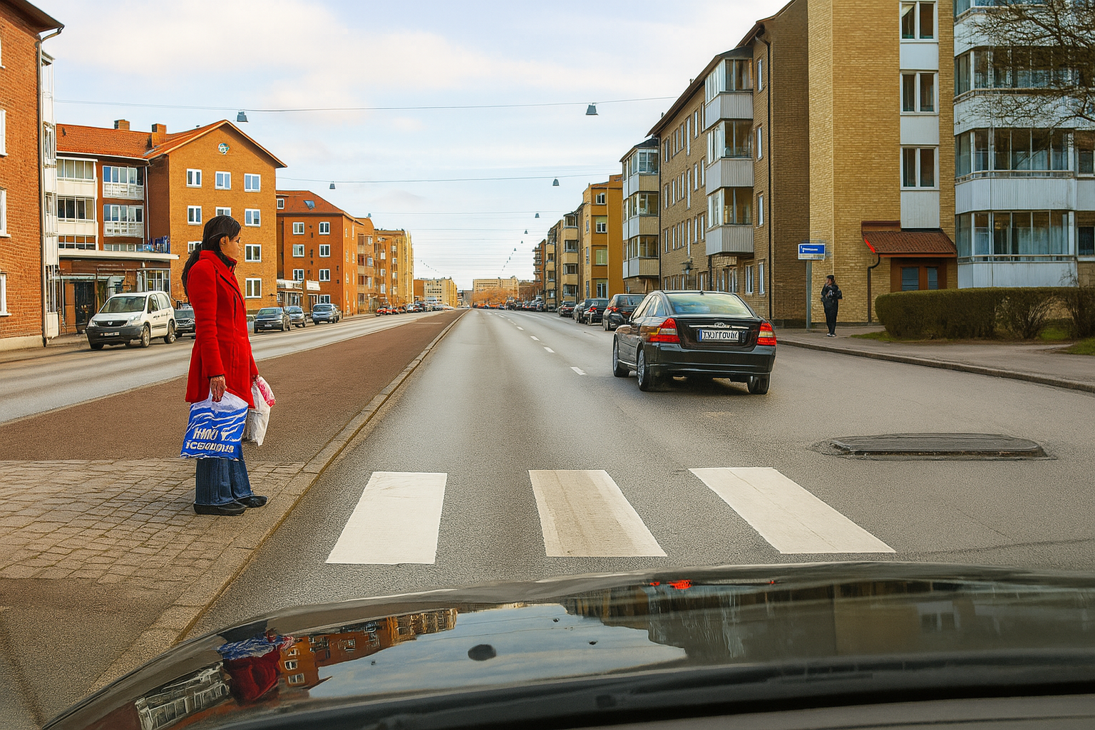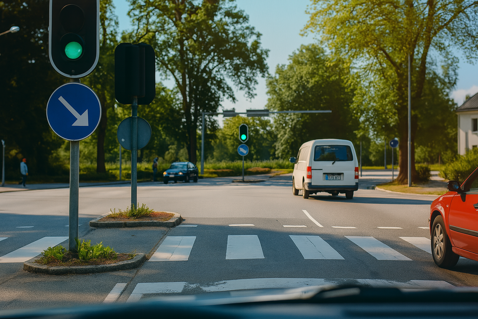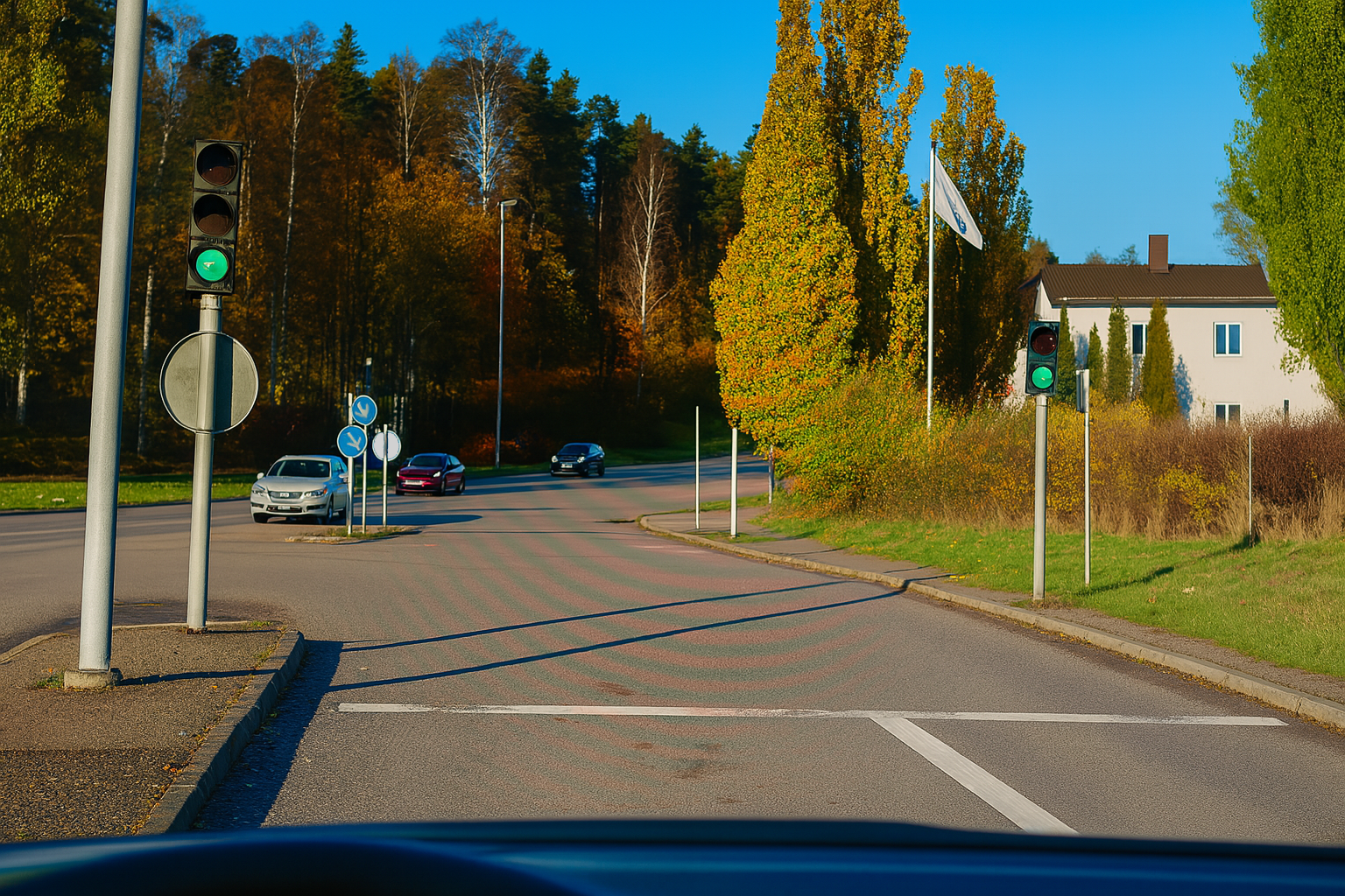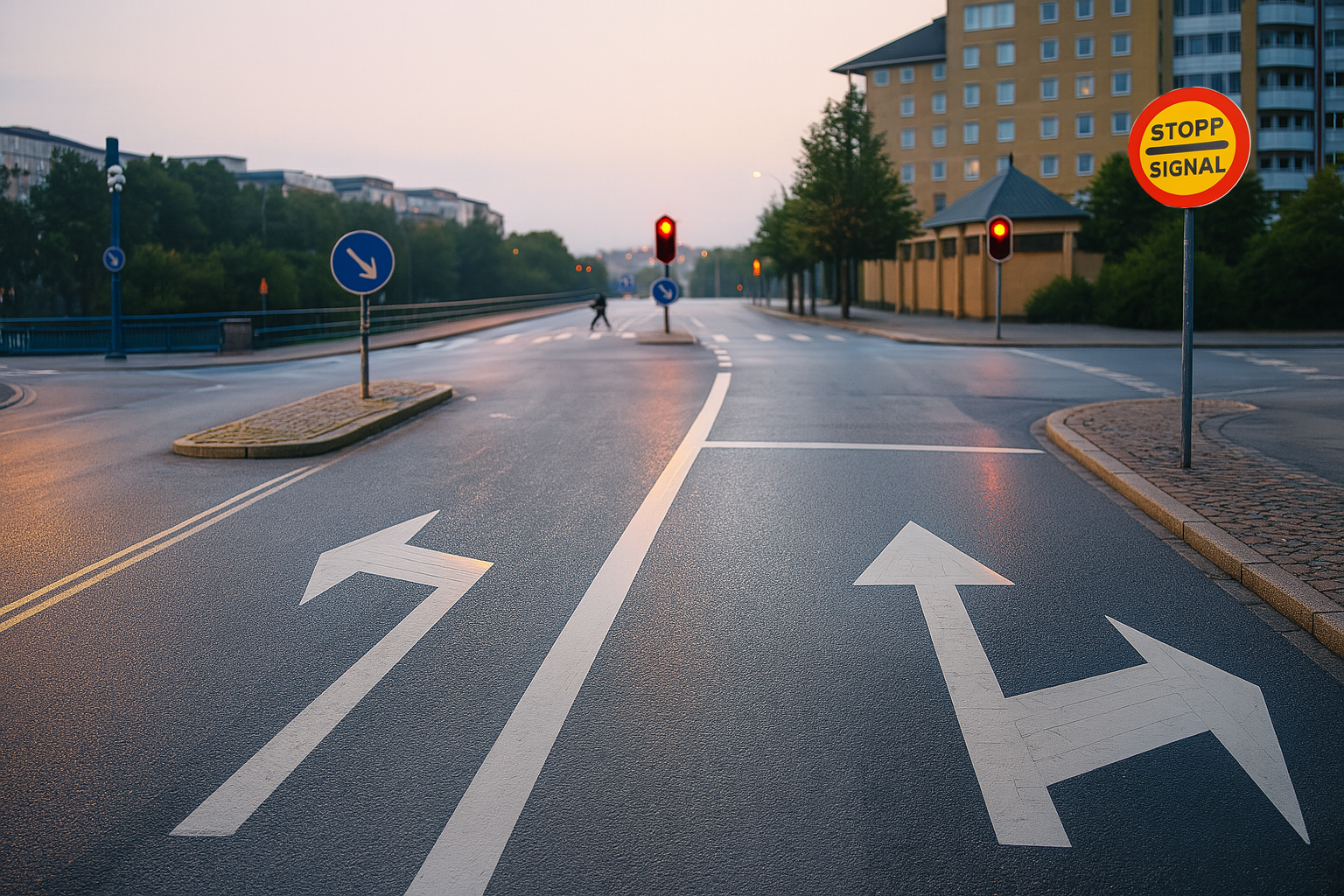 Du ska svänga vänster i korsningen. Måste du ge tecken åt vänster med körriktningsvisaren?