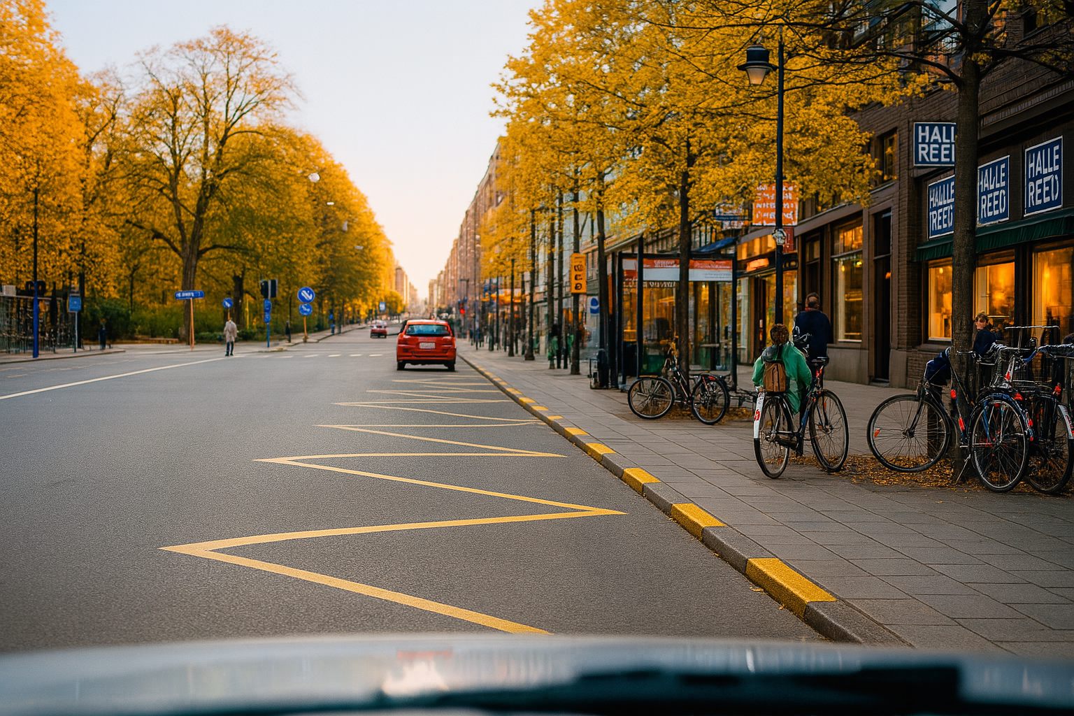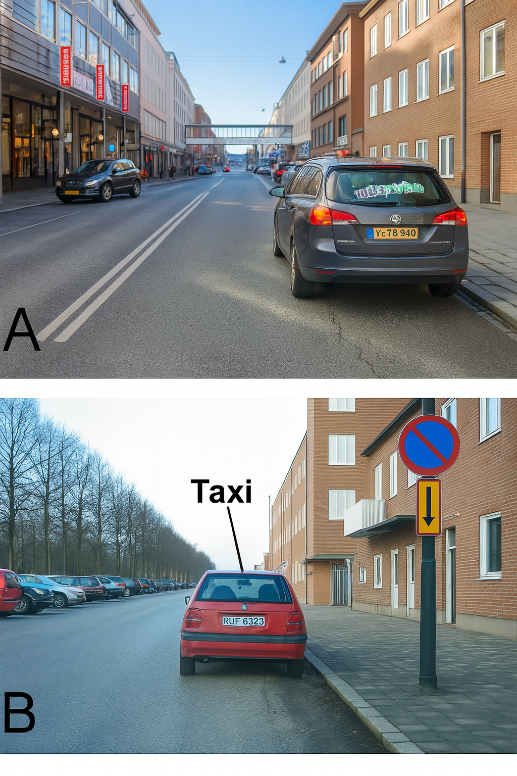 Du ska hämta en passagerare. Får du stanna som taxin på bilden?