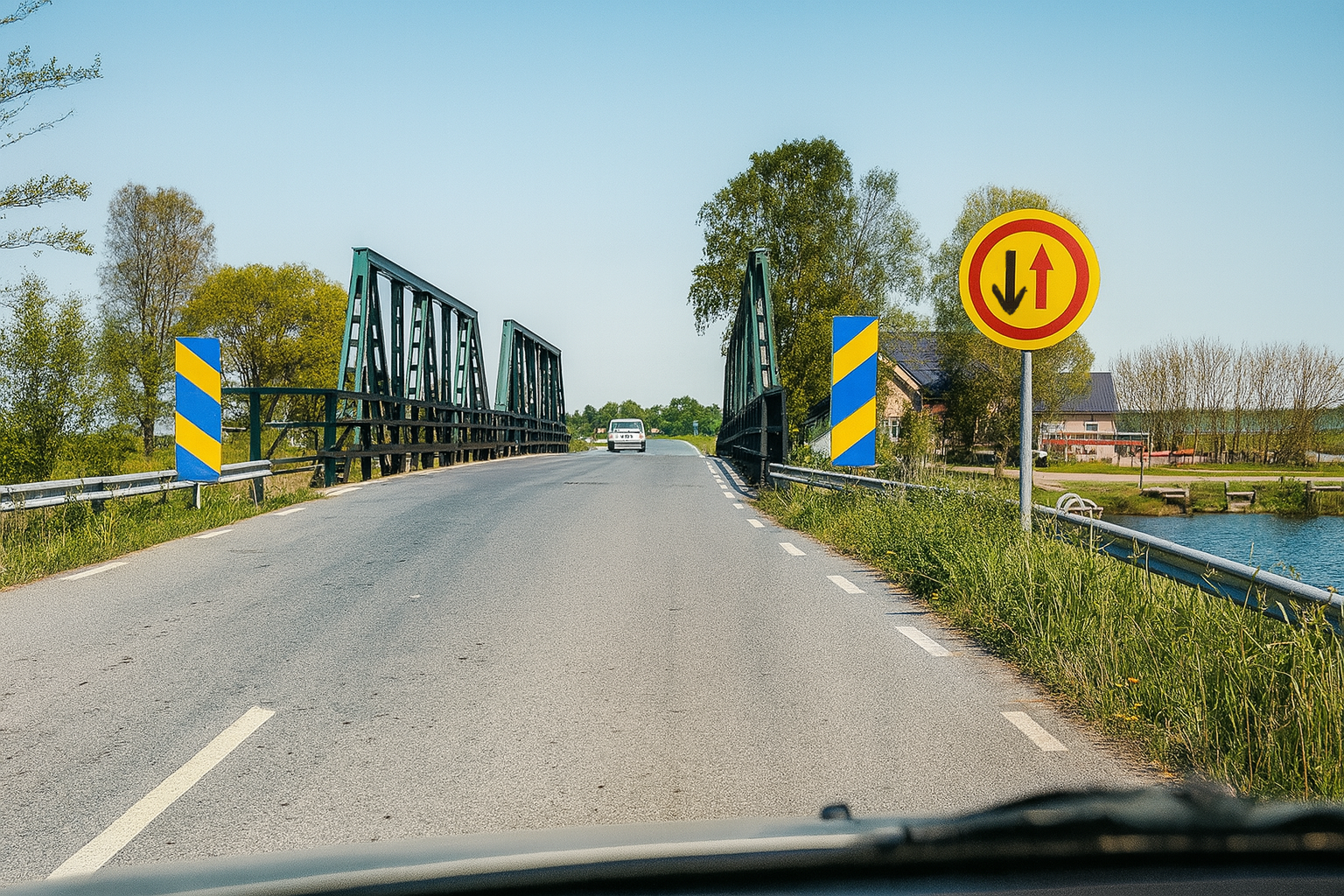 Du kör i 70 km/h i situationen på bilden. Vad är säkrast att göra?