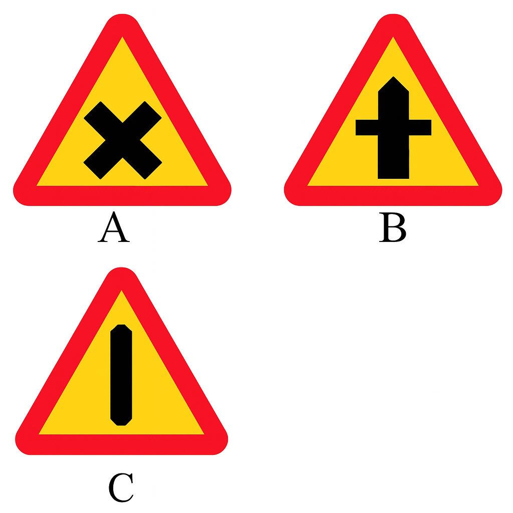 Vilket vägmärke används på huvudled för att varna för en farlig korsning?